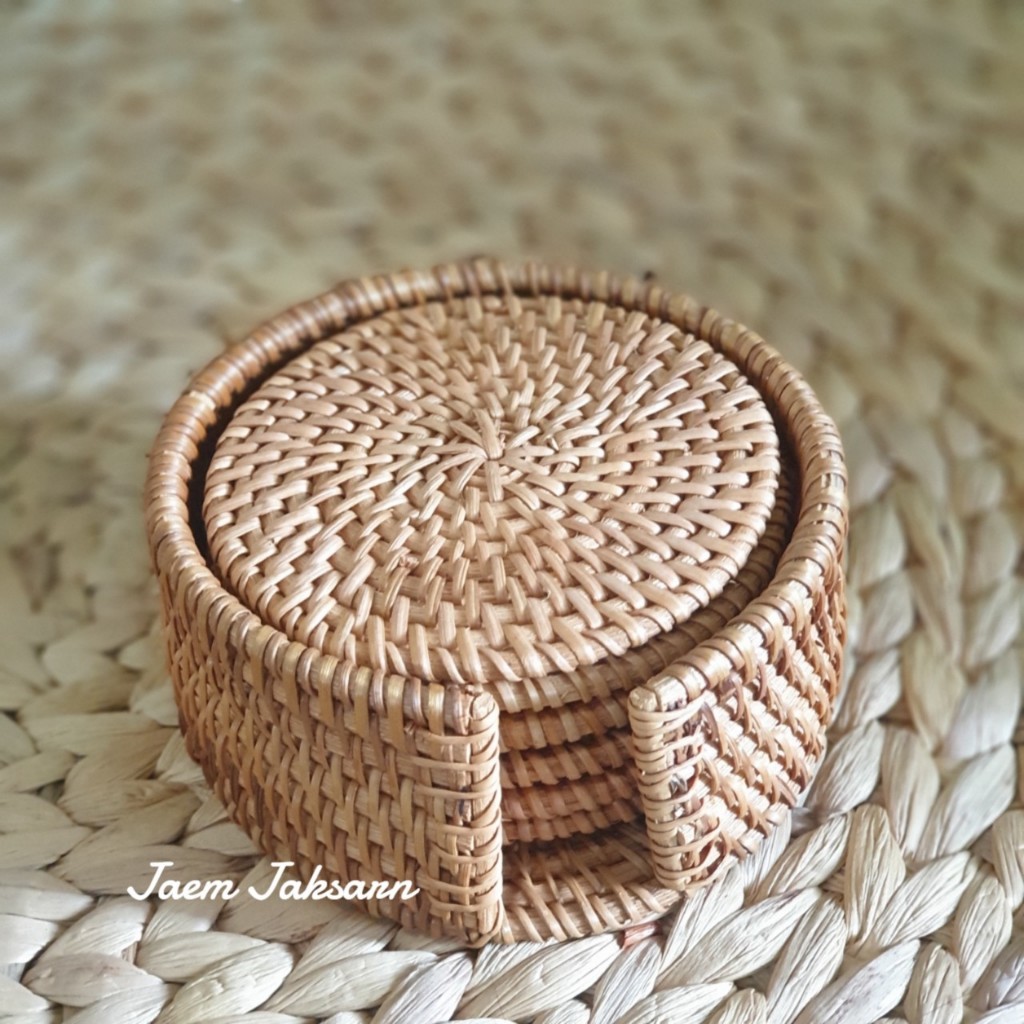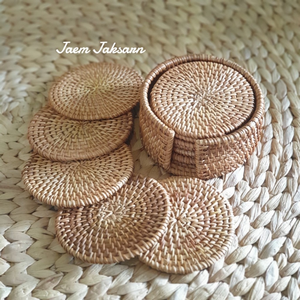 1 Set : ได้แผ่นรองแก้วหวาย 6 ชิ้น และ กล่องเก็บ 1 ใบ